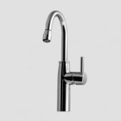 Deck-mounted, single-hole, side-lever mixer with high-arc swivel spout, pull-down aerator/spray and extension pillar 4"Durable, solid, low-lead brass or solid stainless steel constructionInstalls with lever on right side onlyHermetically sealed, universal ceramic disc cartridge with adjustable temperature and flow rate limitation160° swivel spout with dual mode pull-down aerator/sprayPull-down length 24"3/8" OD copper supply linesMounting hole size Ø = 1 3/8"