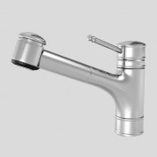 Single-hole, single-lever kitchen mixer with swivel spout and pull-out sprayFlexible supply hoses, 3/8" compression fittingsSwivel spout 140°Pull-out hand-spray- TAC turn and clean aerator, KWC JETCLEAN® technology- automatic diverter reset- lockable spray mode- pull-out length 27"Universal ceramic disc cartridge with adjustable temmperature and flow rate limitationMounting hole size Ø = 1 3/8"