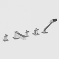 Two Handle Roman Tub Faucet with HandshowerQBIX-ART SeriesFixed spout, 8" reachCeramic disc valves, 1/4" turnFlow rate: spout 9 gpm @ 60 psihand shower 2.5 gpm @ 80 psi